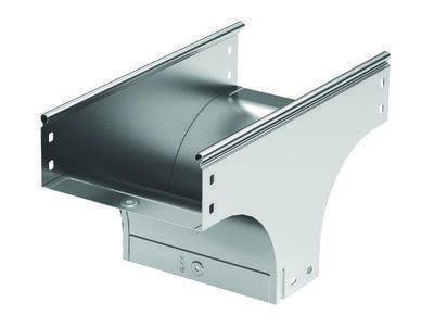 Ответвители – это аксессуары, облегчающие построение кабельных трасс сложной геометрии, с поворотами и изгибами. Они позволяют создавать ответвления кабельной трассы. Ответвитель TD имеет Т-образную форму и применяется для организации поворотов и ответвлений в вертикальной плоскости. Его конструктив обеспечивает плавный поворот и предупреждает повреждение кабеля при прокладке. При применении вместе с крышкой обеспечивается высокая степень пыле- и влагозащиты кабеля – до IP 44, и при этом простой доступ к кабелю, т.к. крышку можно снять при необходимости. Высота боковой стенки лотка – 100 мм, ширина в горизонтальном направлении – 400 мм, ширина в вертикальном направлении – 100 мм.