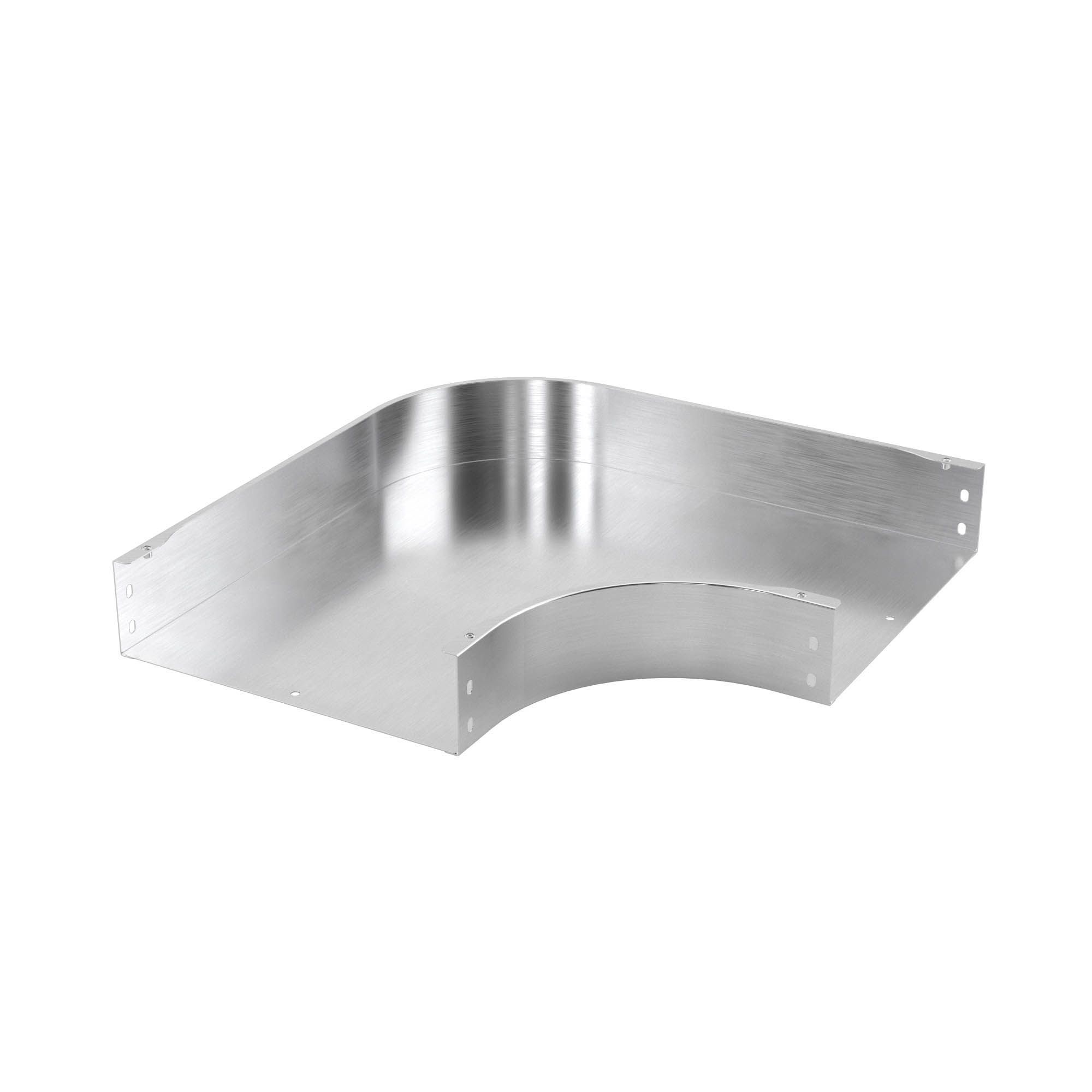 Угол горизонтальный 90° обеспечивает поворот трассы в горизонтальной плоскости под углом  90°. Аксессуары из алюминиевого сплава применяются при прокладке кабеля на объектах с повышенным воздействием агрессивных сред. Использование решений из алюминия позволяет значительно снизить общий вес кабельной трассы. Угол применяется с алюминиевыми лотками линейки "S5 Combitech" с высотой борта 80 мм и шириной основания 500 мм. Толщина металла - 2,0 мм. Аксессуар поставляется в комплекте со всеми необходимыми для монтажа метизами и крепежными элементами.